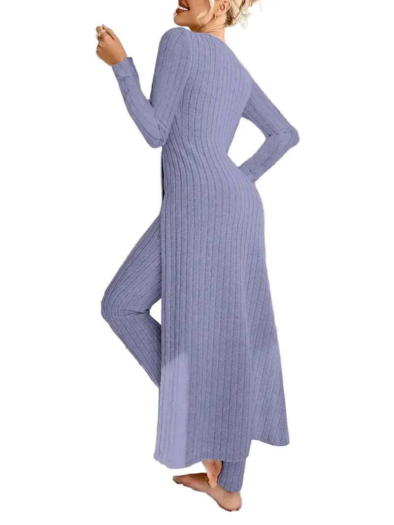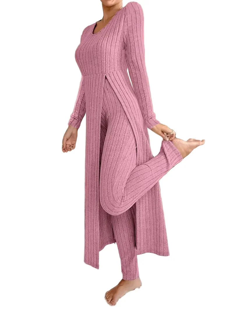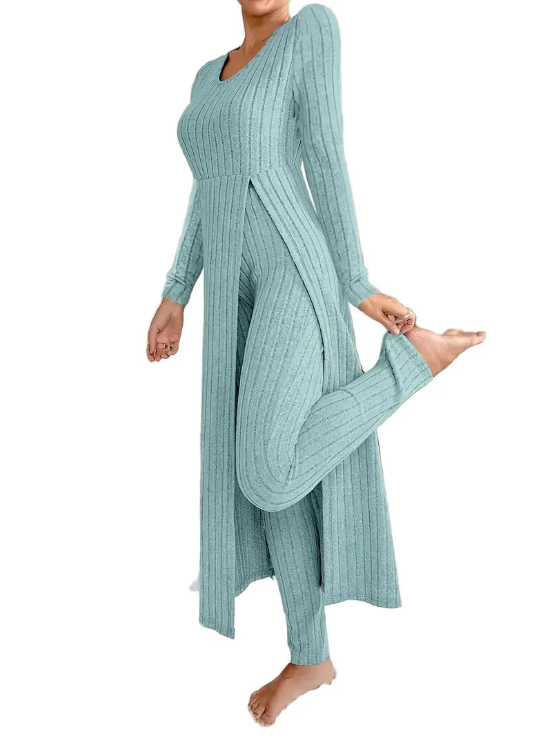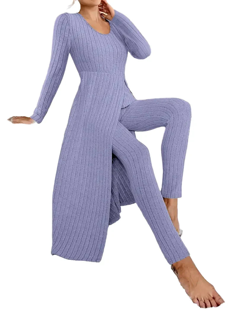 • Style : Ensemble de deux pièces avec un haut à manches longues et un pantalon canané – idéal pour un look décontracté mais sophistiqué.