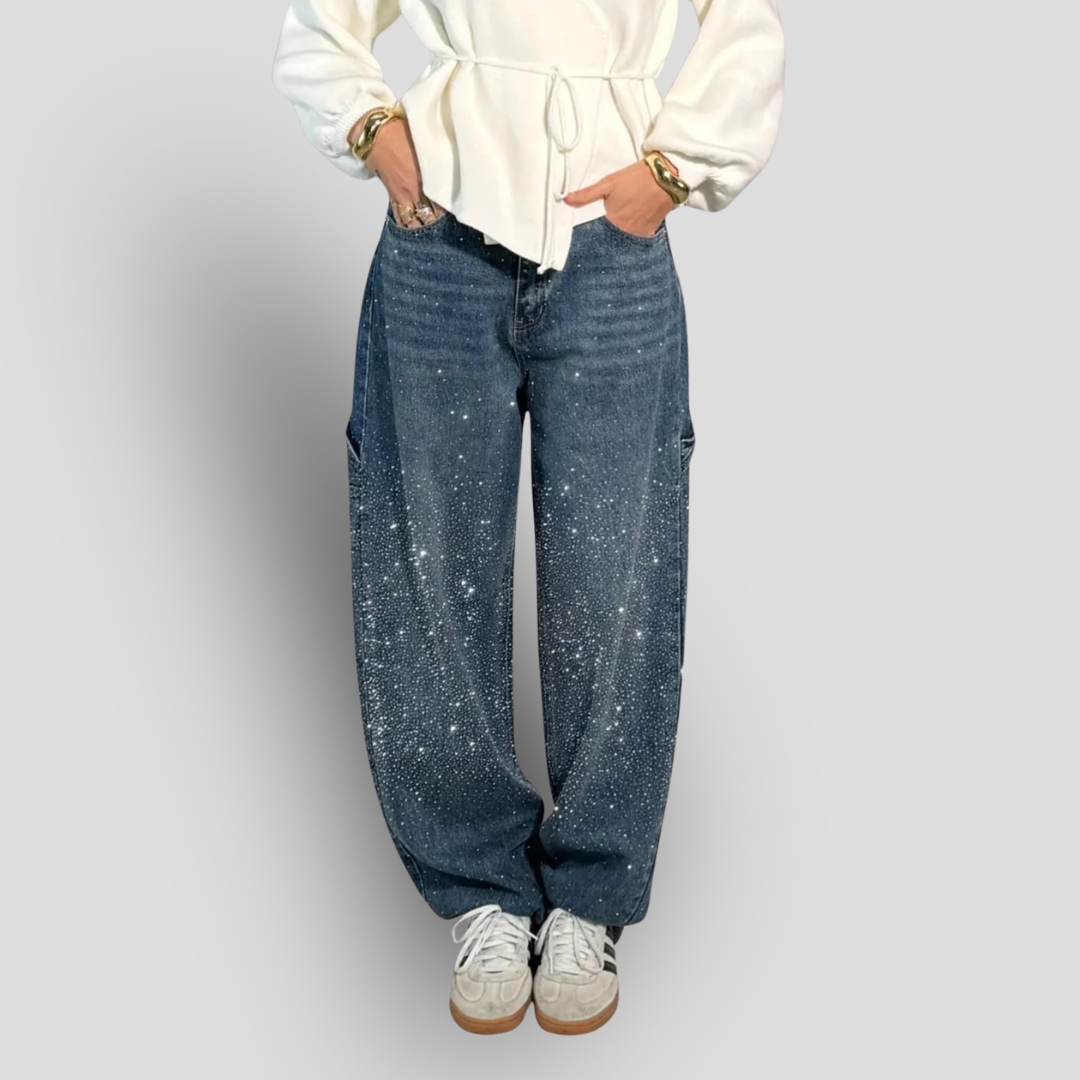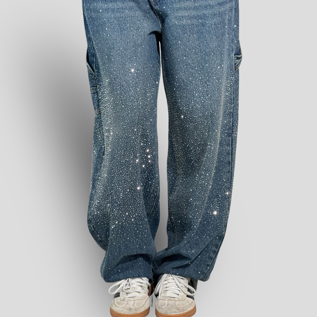 Jean Carpenter Balloon avec applications de bijoux ultra-brillantes – coupe Crazy Fit de haute qualité.
