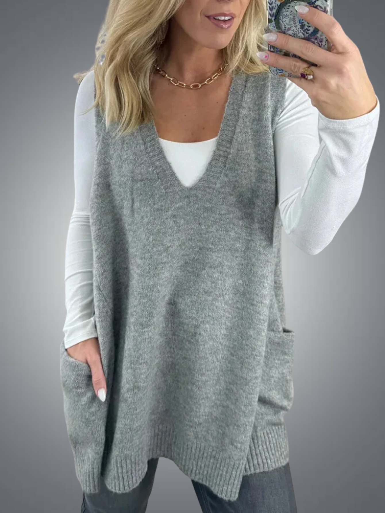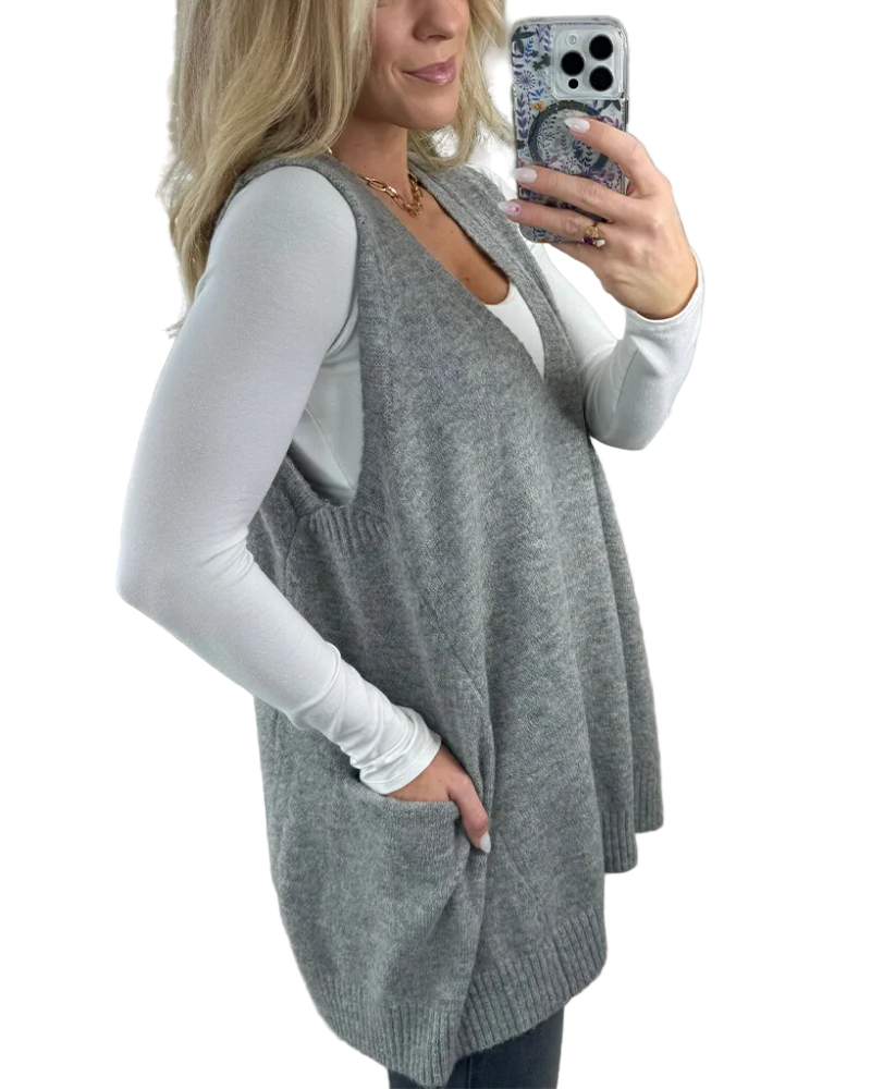Doux, élégant et chaud, notre gilet est apprécié par toutes nos clientes !Ce gilet fluide et moelleux est parfait pour superposer vos tenues, avec sa coupe longue et évasée qui flatte la silhouette.Le tissu léger en maille offre chaleur et confort sans alourdir votre look, tandis que sa teinte chinée et ses détails côtelés ajoutent une touche de sophistication.