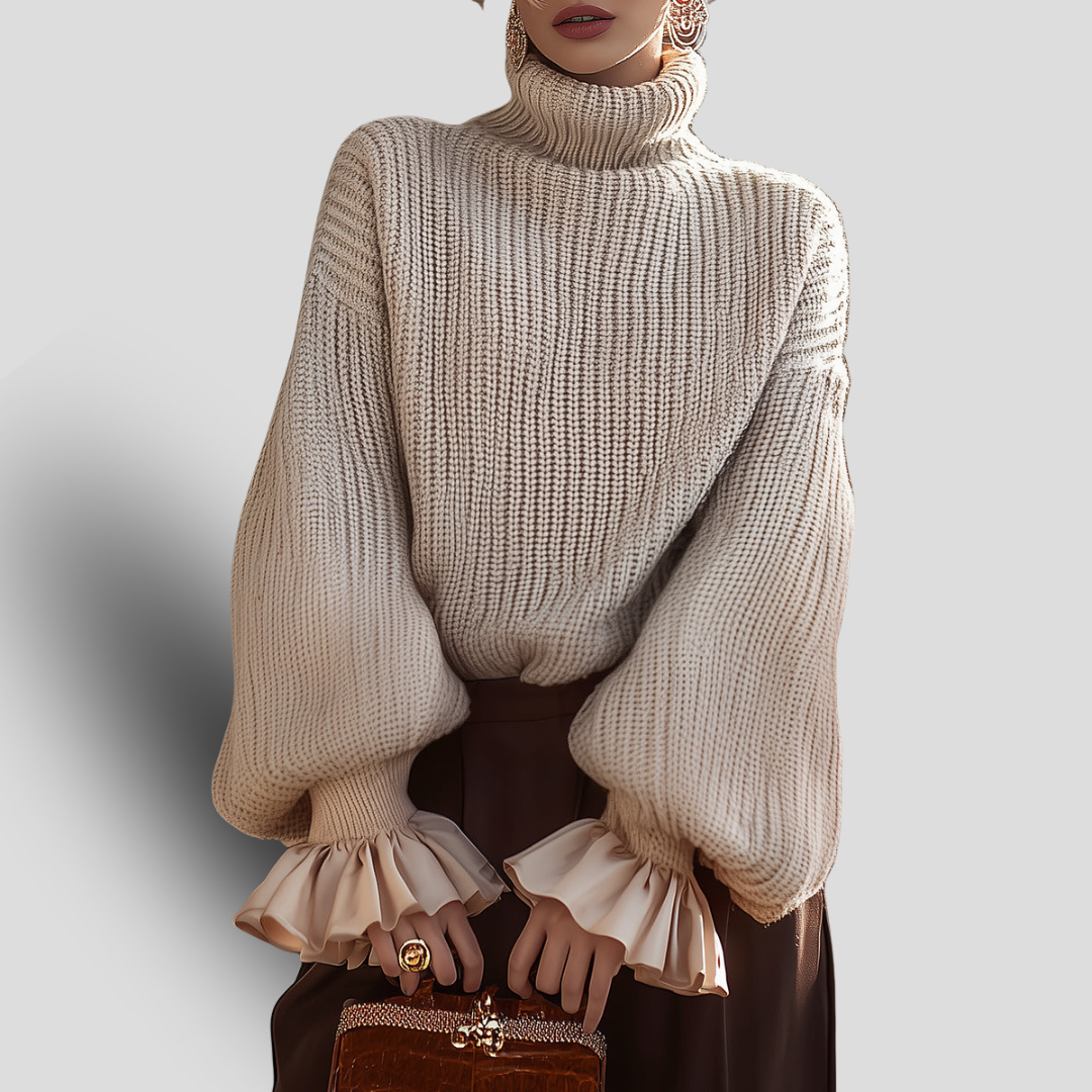 Frisson de Crème | Pull Col Roulé à Poignets Volantés