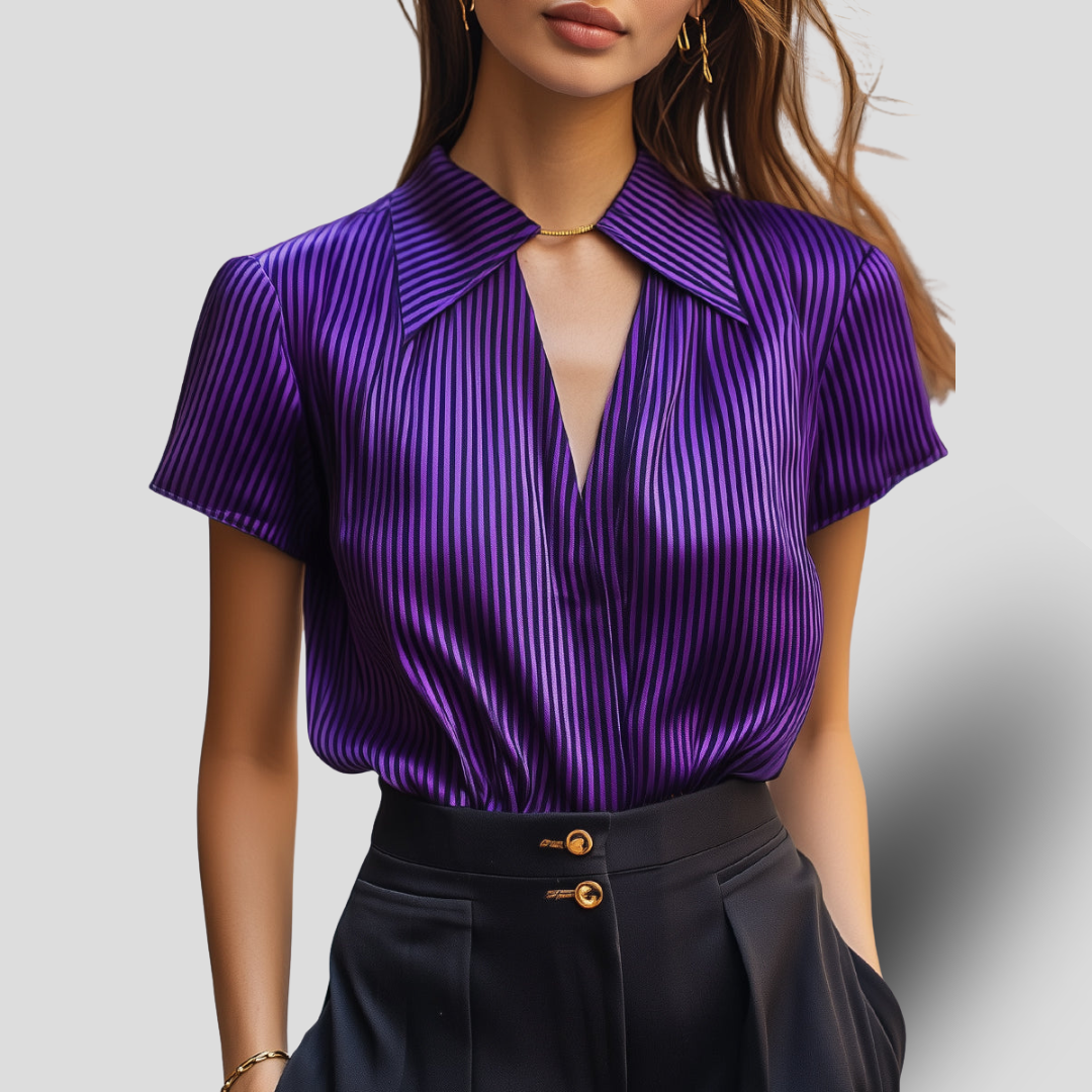 Rayures Nocturnes | Chemisier en Satin Violet et Noir