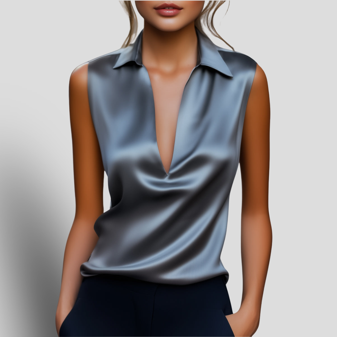 AMBRE PARIS présente ce haut en satin gris épuré pour sublimer votre allure sophistiquée. Adoptez une élégance moderne avec ce modèle fluide, doté d'un décolleté plongeant élégant et d'un col minimaliste. Le tissu en satin lisse drape magnifiquement la silhouette, offrant une touche de sophistication et d'allure.