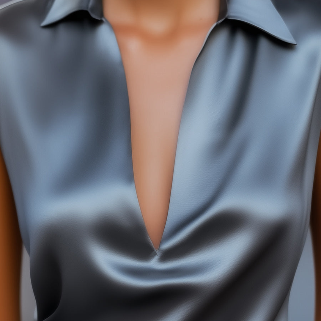 Satin Graphite | Top Décolleté Plongeant