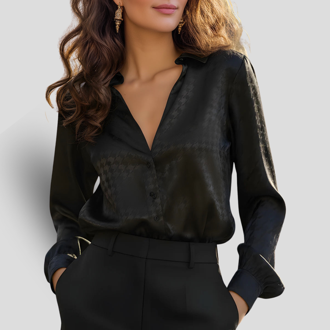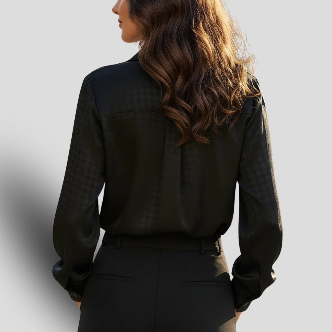 Noir Éternel | Chemisier en Satin Pied-de-Poule